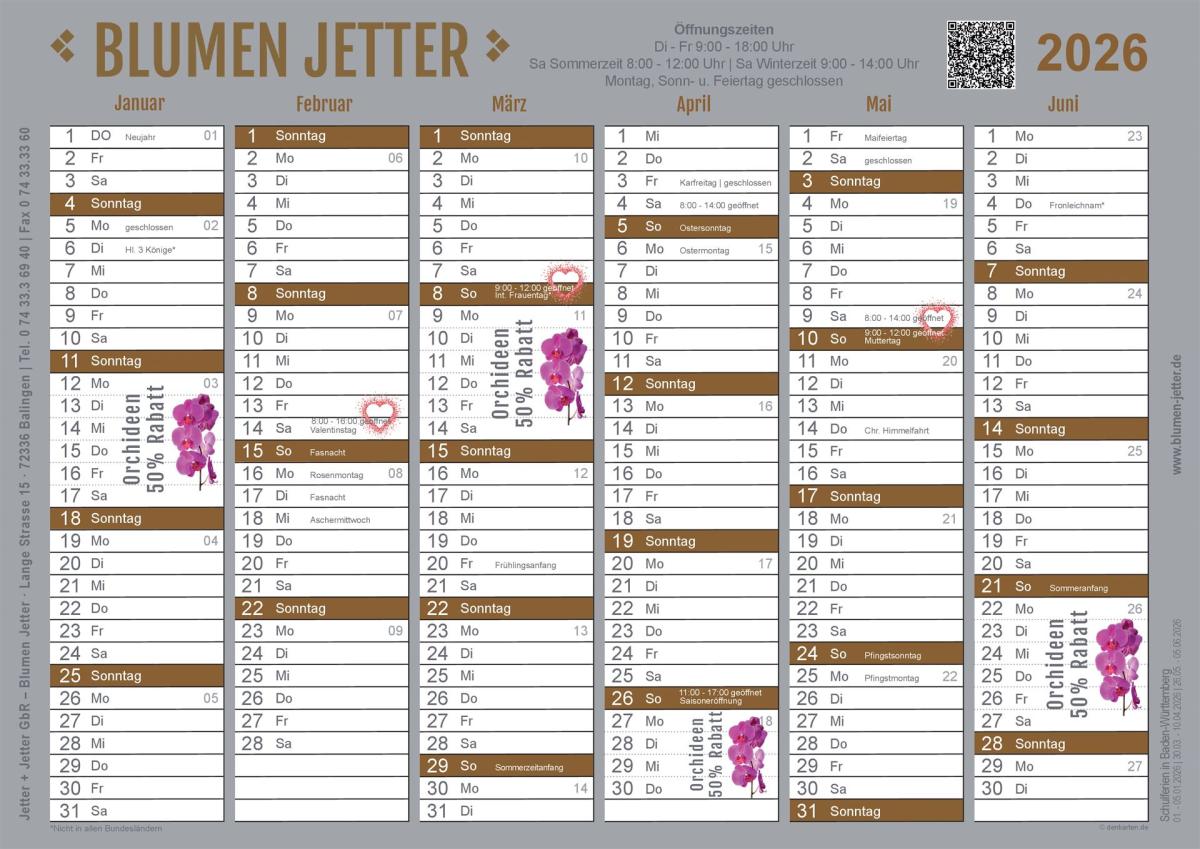Gerne können Sie unseren Kalender hier herunterladen oder aber unsere MitarbeiterInnen darauf ansprechen.